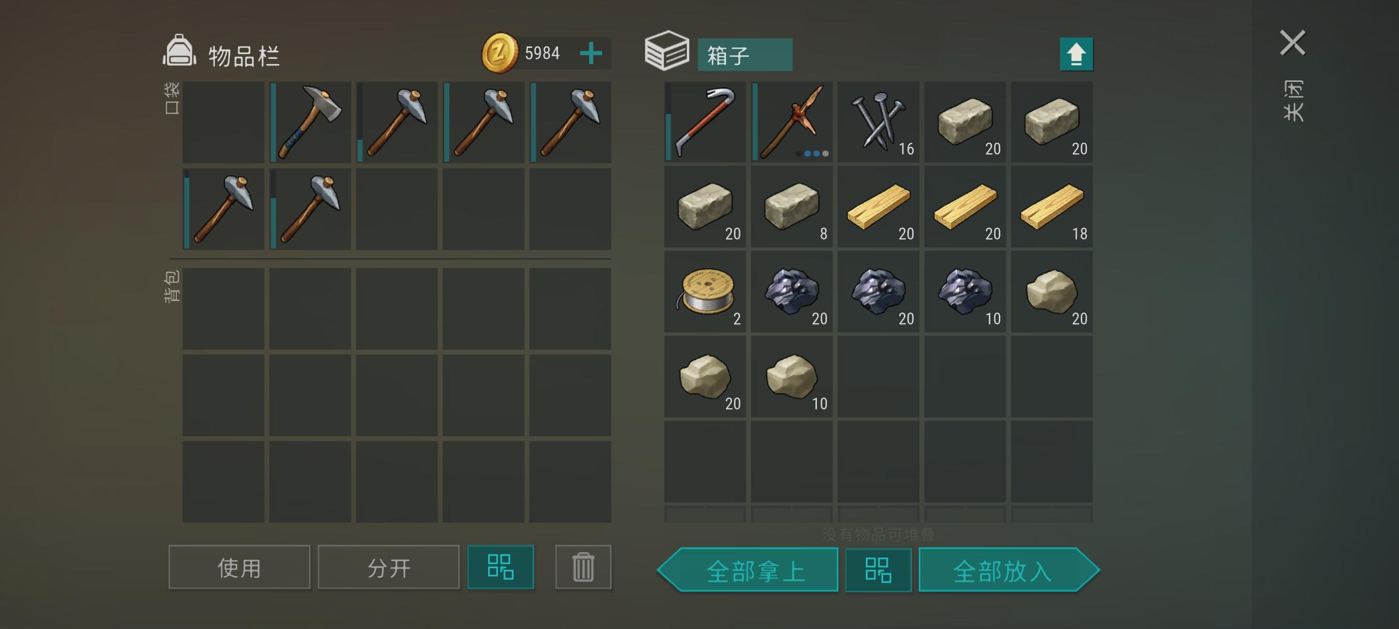 一个铁斧,6~7个斧头工作台都有东西