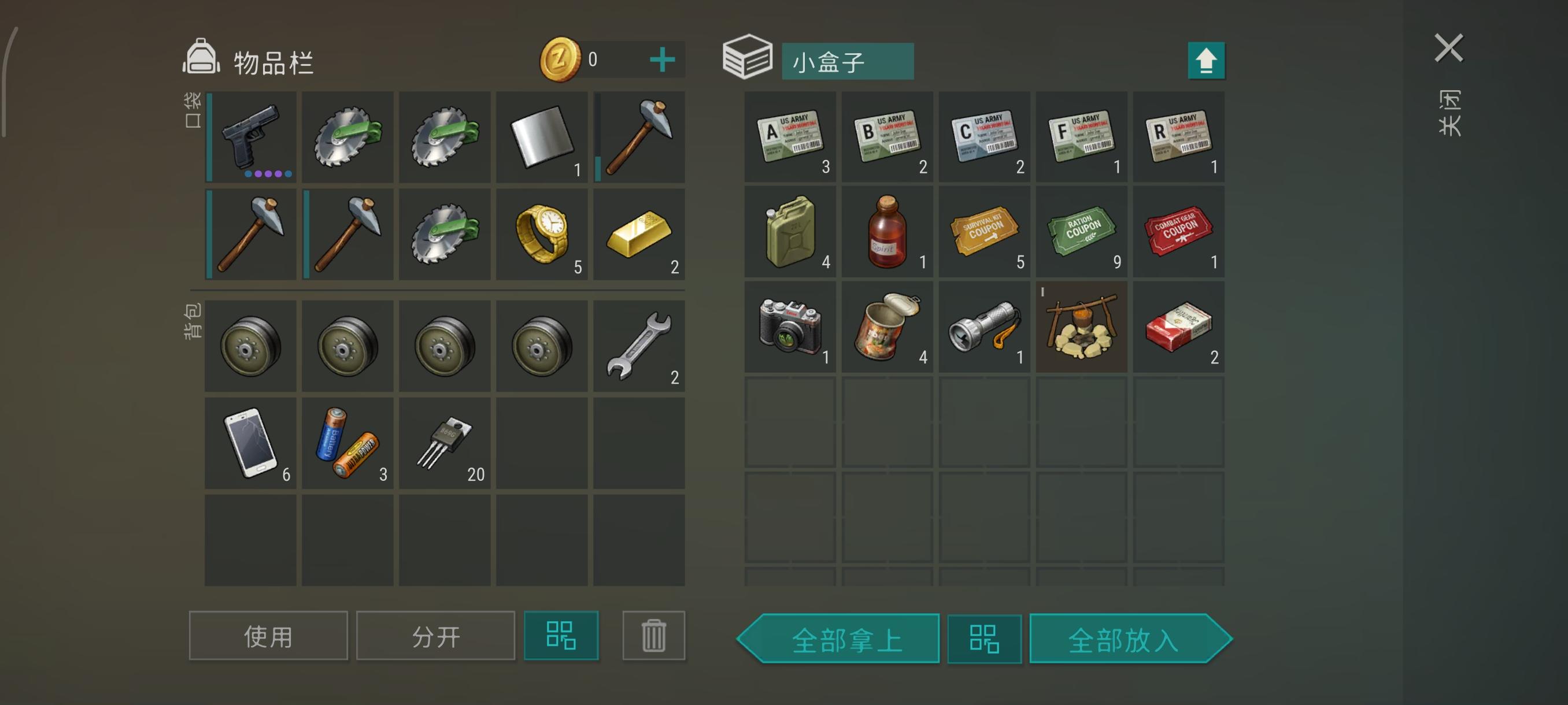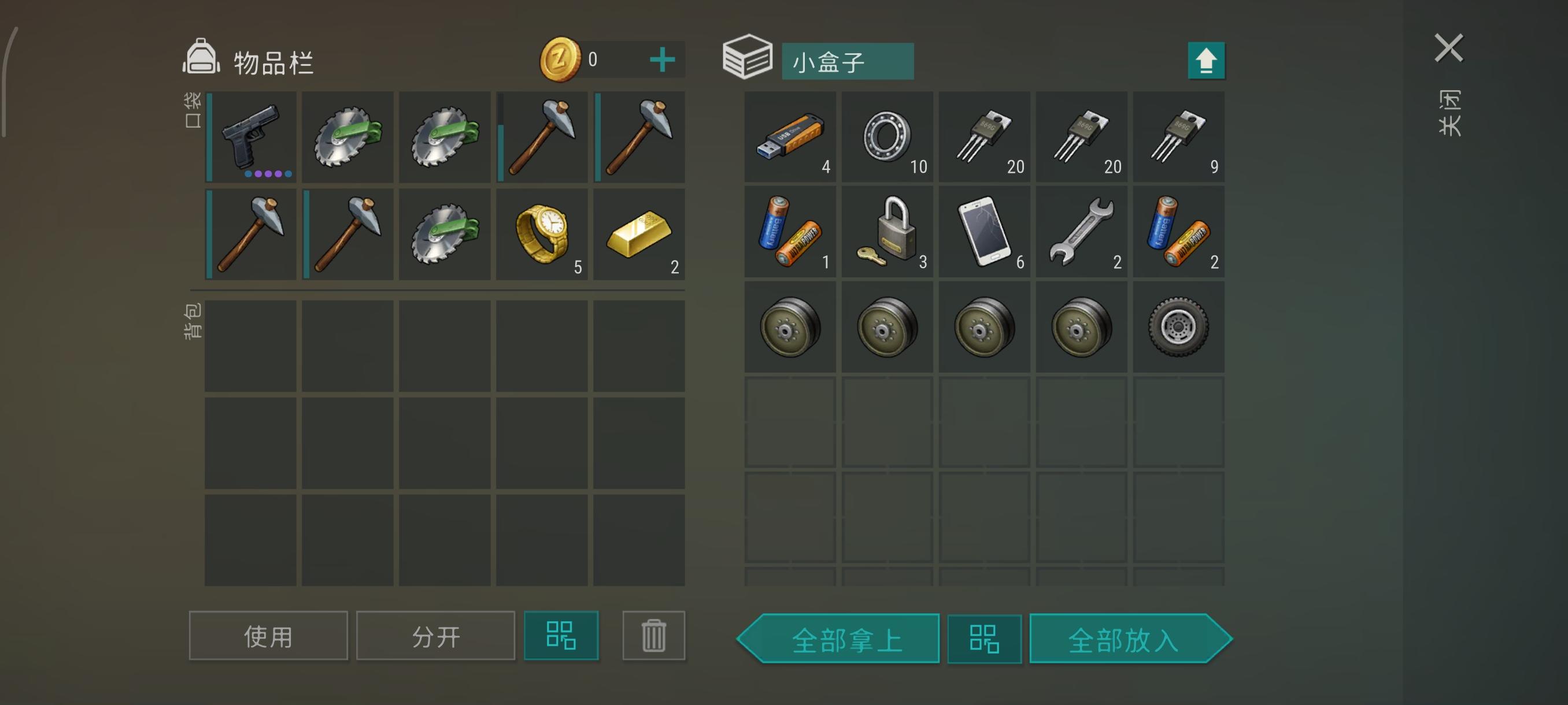 一个字穷,家里还缺全地形胎的可以来走走带上:一把铁斧,五个石斧刚刚好其他比较一般的资源没怎么展示#地球末日生存抄家