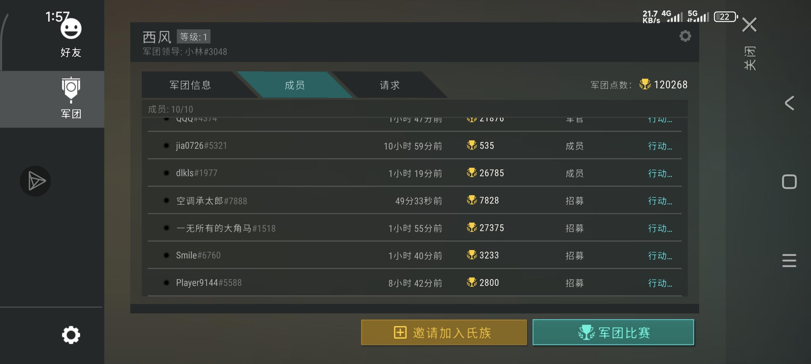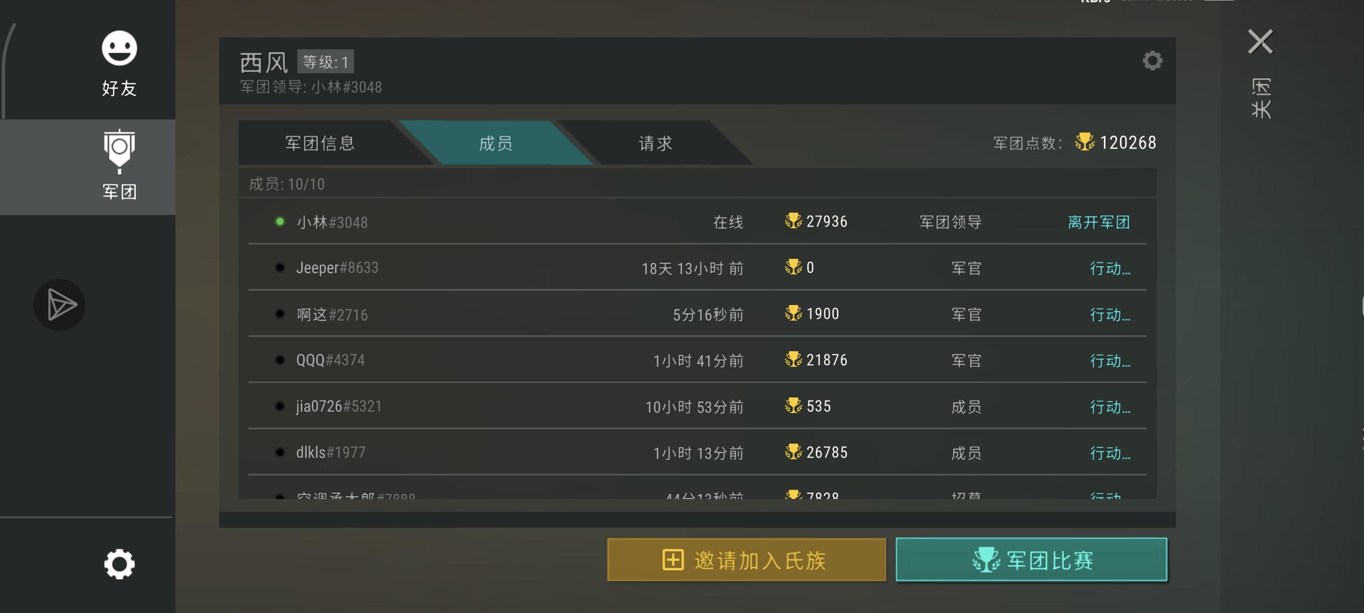 我这一组几乎没什么人打分,目前军团还有足足5个空位,想拿好奖励的快来吧!想加的话,可以加 下QQ群550886002