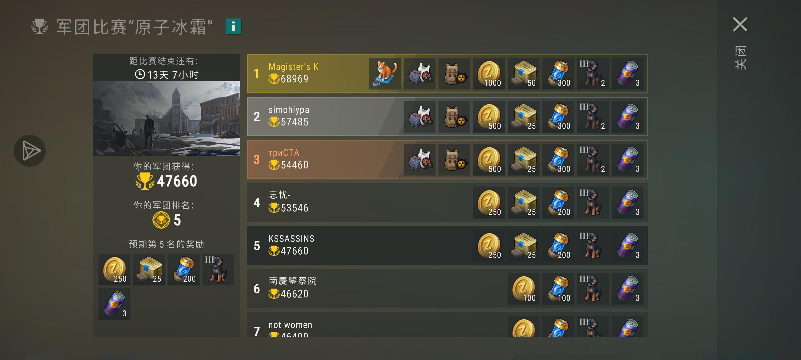 不氪金,肝一点,跟赛区比赛的军团也是半数死人,好拿名次,这分数是两个人打上去的,看中的来吧