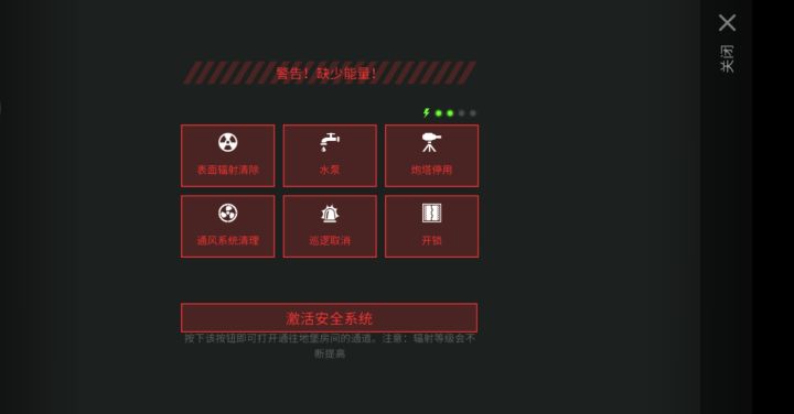 这些设施都有些什么用呢开哪个最具性价比的?这一期所有设施的出自b2(其他层都一样)(一次只能开两个设施)先从第1个表面辐射物清理讲起,我会放对比图来对比开与不开之间的区别表面辐射物清理材料如下:橡胶:20个齿轮:3个强力胶带:40个扳手:10个空气过滤器:10个球轴承:80个铝板:10个铝线:15个锤子:3个钢板:10个直接展示开与不开的区别这个是没开时的状态↓