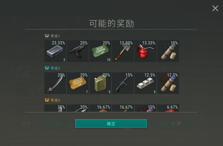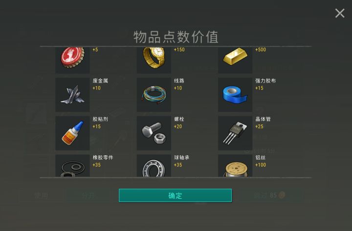 随便填点垃圾,用广告抽了个十连出了两把Uzi,这下乌兹也是有稳定的产出方式了水一下一档奖励每种材料耗费如下:1个金条,4个手表(3.33),100个瓶盖,50个废金属或者电线,34个胶水或者胶带(33.3),25个螺栓,20个晶体管,15个橡胶零件或者轴承(14.2),5个铝线。#地球末日生存