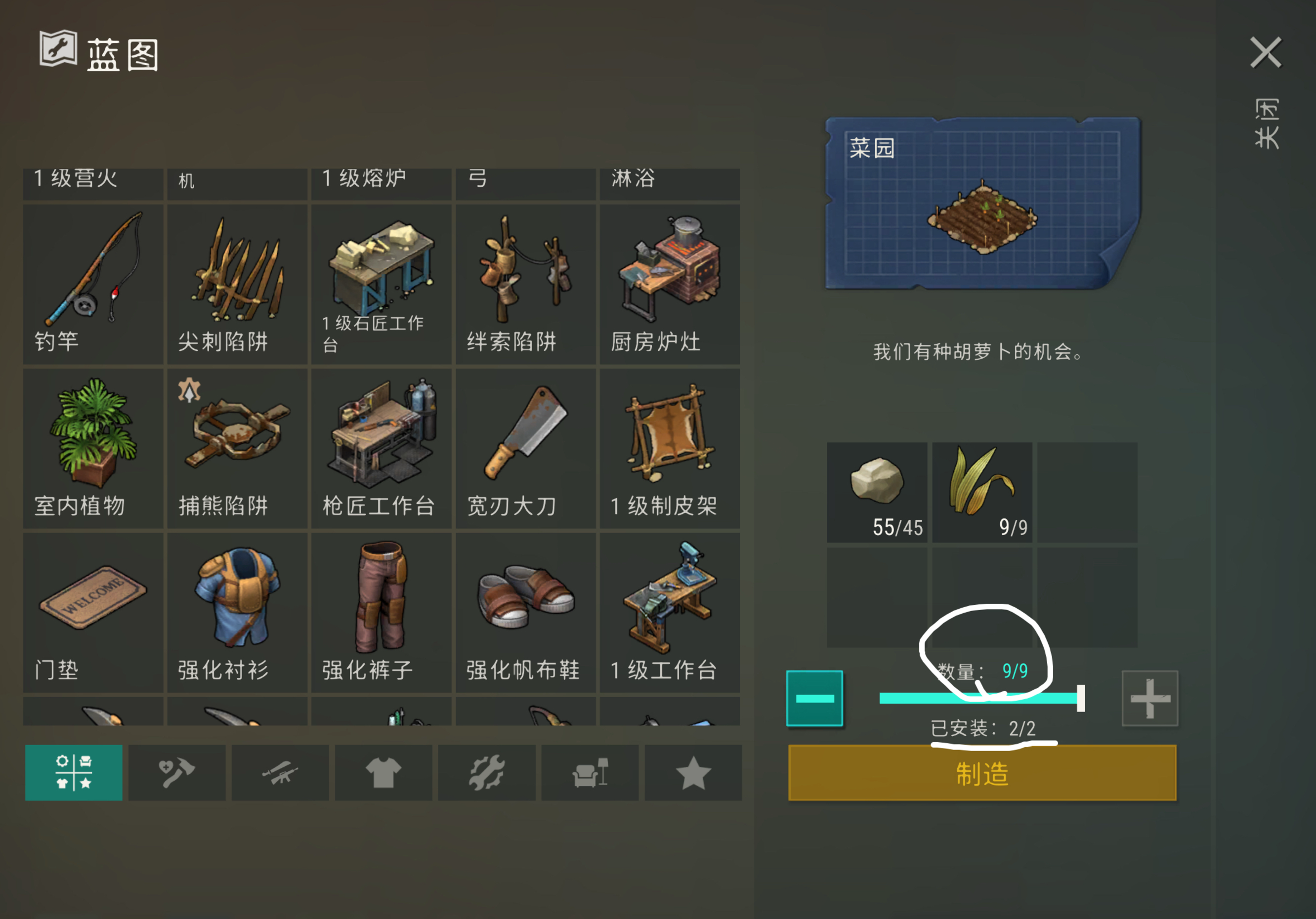 菜园最多可以做几个?上面显示9,下面显示2/2疑惑?#噗噜噜实验室 #地球末日生存 #地球末日生存布局 #地球末日生存官方 @游戏懂哥