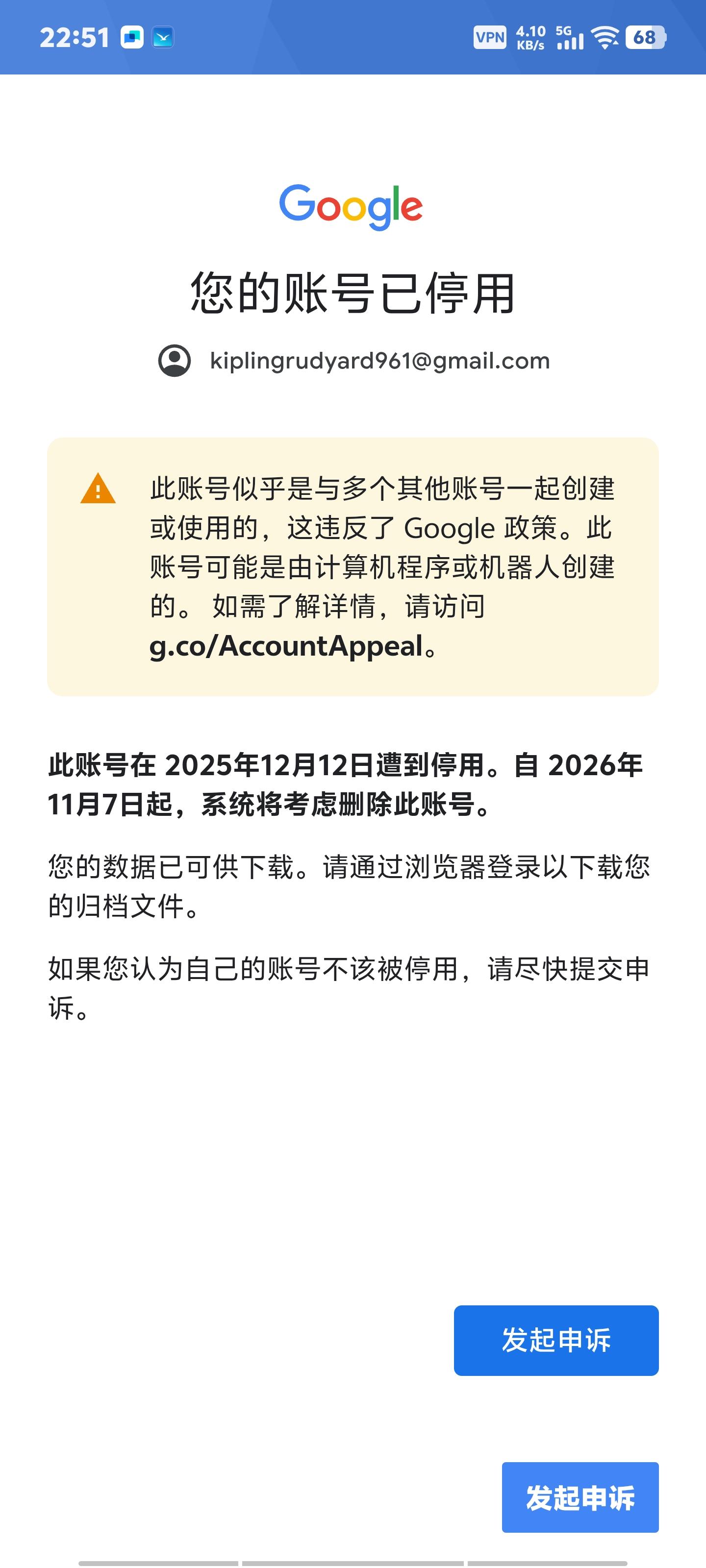 天塌了,谷歌账号被封了