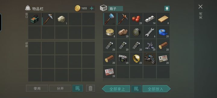 1C4不用带斧头,进去捡地上的材料做,箱子里也有木头石头。木工台有一组橡木和一组橡木板