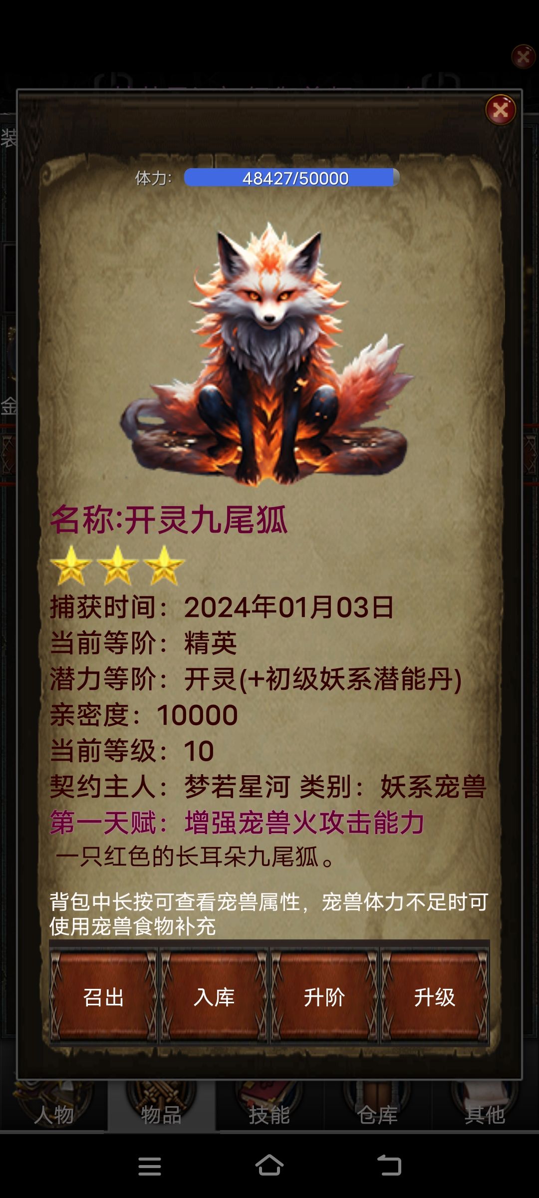 游戏耐玩儿性五星,推荐大家玩儿。 宠物潜力和宠物等阶不一样,宠物星级代表宠物潜力,宠物潜力是能升级的上限,一颗星潜力代表可升级10级;每个宠物的等阶提升宠物属性都会大幅提升,等阶仆从可以理解为一阶宠,等阶精英二阶宠,等阶开灵3阶宠,对应人物0到10级,相当于一阶,11到20级,相当于二阶,21到30级相当于三阶,见图一;注意背包里宠物名字开灵只代表潜力,见图二。 人物综合实力怎么提升?人物和宠
