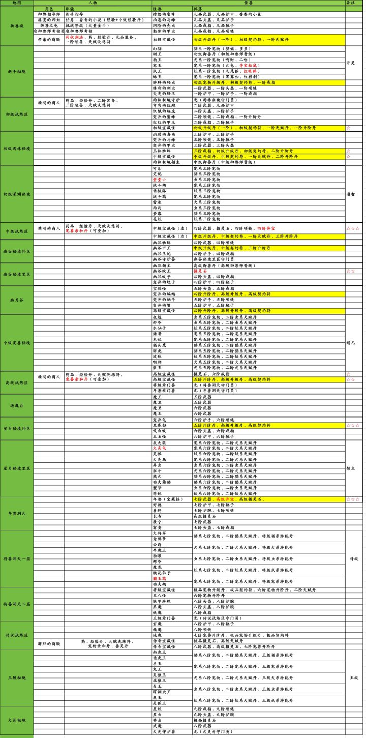 《御兽之王》怪物宠兽NPC装备掉率分布图