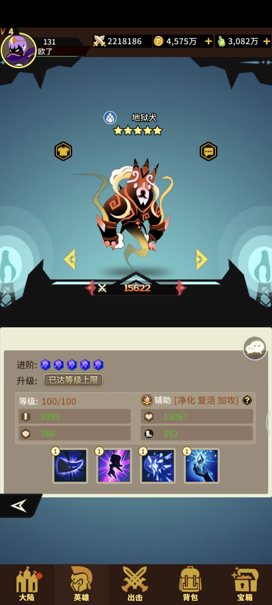 水系辅助小奶狗四技能!获取难度容易!抽卡+宝箱+兑换!一技能为攻击最高的两个队友驱散负面状态+攻击力两回合!!二技能+生命+攻击满级+治疗效果 三技能复活单体回复生命力!没死亡给最低单体+生命!四技能强化一技能提升目标暴击率![表情_比心]前期还可以后期当狗粮#浅评一下
