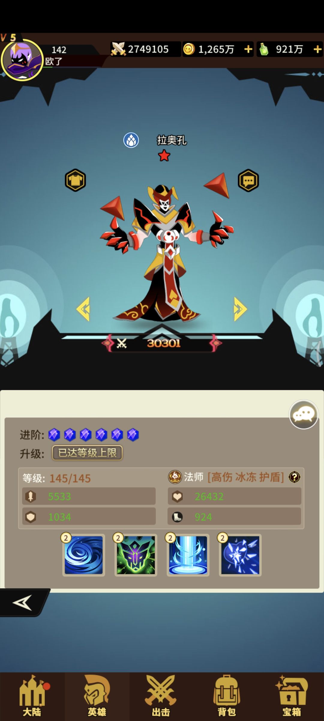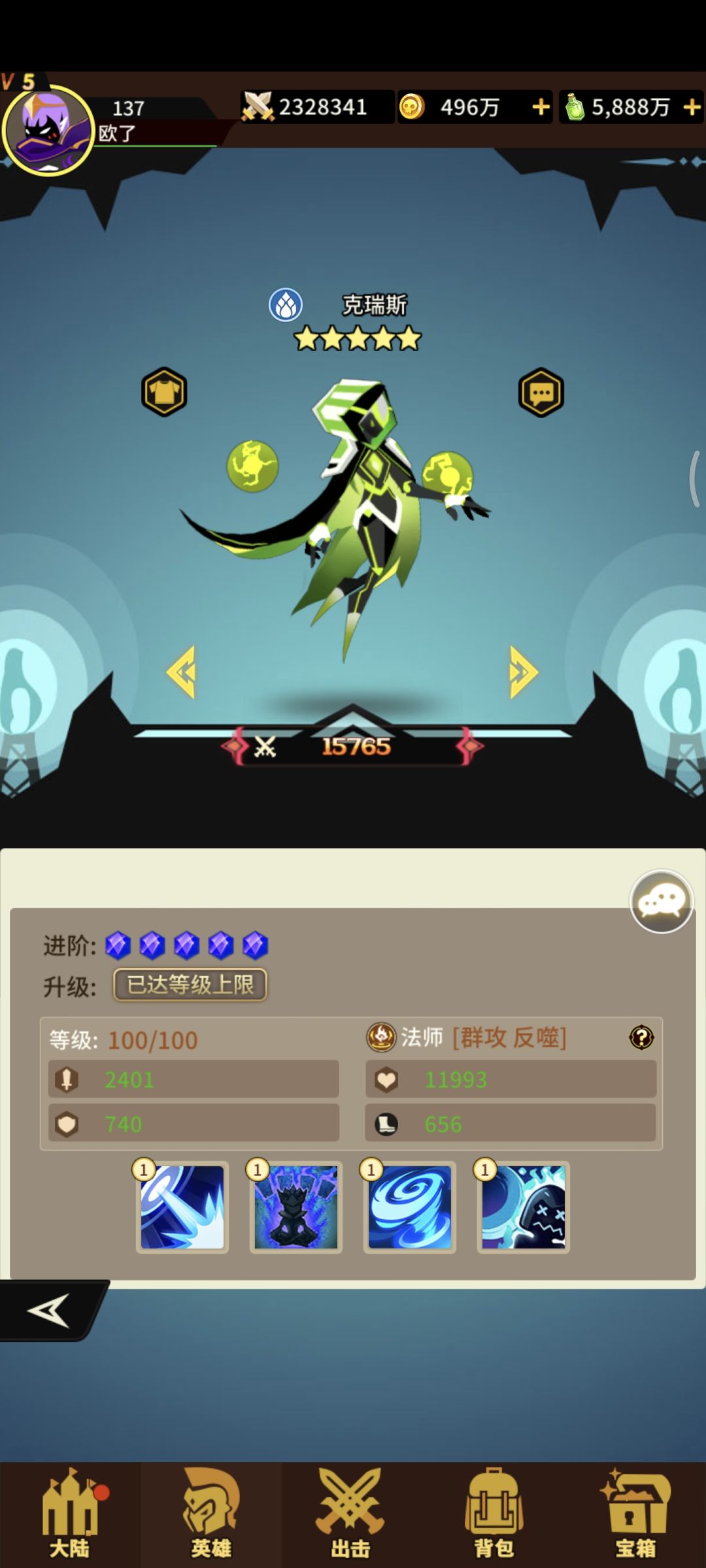 水系法师克瑞斯四技能!获取难度一般!抽卡+宝箱+兑换!一技能打三个概率+法术反噬(携带该状态的单位发出魔法冲击会收到伤害)二技能+攻击+生命+速度! 三技能打四个概率+法术反噬满级目标若带有法术反噬增加暴击! 四技能法术反噬状态提升攻击[表情_举手]常规法师!对法师伤害大!一般吧!前期还是可以用用的!#浅评一下