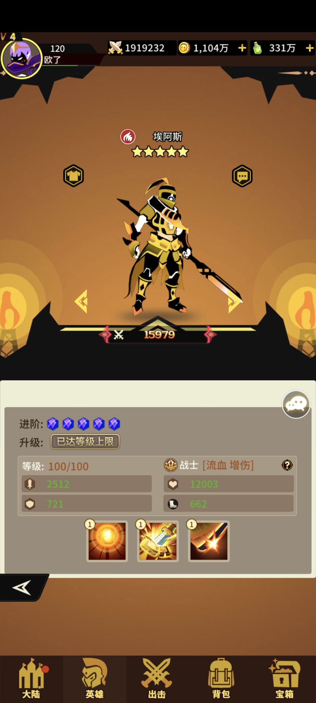 火系战士三技能!获取难度容易!抽卡+宝箱!一技能单体攻击概率+流血+恢复生命 二技能+攻击+生命 三技能单体攻击提升自己抗性打流血敌人伤害提升![表情_吃瓜]狗粮一枚!#浅评一下