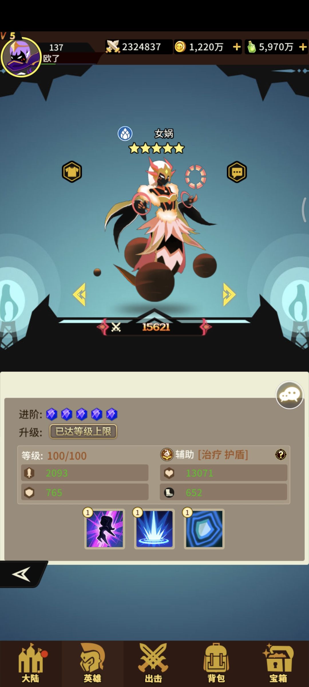水系辅助女娲三技能!获取难度易 !抽卡+宝箱+积分兑换!一技能恢复单体生命力概率驱散异常状态! 二技能+生命+攻击 三技能恢复全体生命给法师+护盾 狗粮一枚![表情_比心]#浅评一下