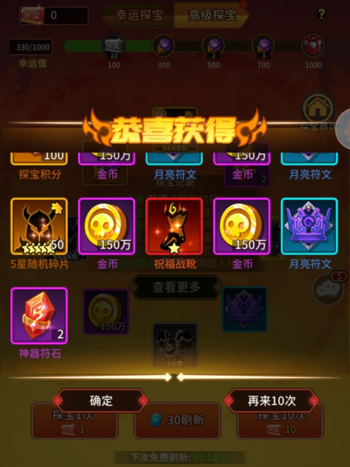 1、尽量准备20个高级探宝卷再开始2、一定要刷出顶部和左边都是是五星或五星碎片,如图一。3、尽量十连不要单抽,如果十连出了一个五星,可以单抽一次看看运气。4、拿到一个五星后,重复1-3步骤,一定不要赌顶部的五星(个人刚玩的时候不懂抽了80次才拿到顶部血亏)。5、左边如果是暗系蜥蜴,十连很容易拿到。