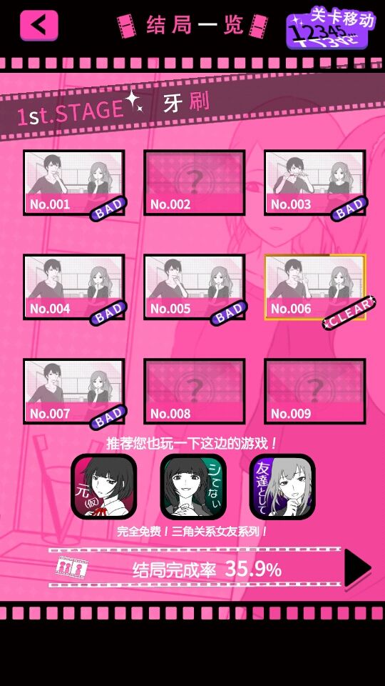 真的很好玩儿,『我君』终于有了一个形象,虽然说有些结局看起来真的很丑很傻看着就想笑,不过单论颜值的话长得还真的挺好看,握住女友的手那里的时候也是撩爆了,如果说几个系列里『我君』都是这样的外貌设定那怪不得可以撩到那么多姑娘还脚踏好几只船(什么)虽然女友二长得不是我喜欢的类型,但是笑起来也真的很好看。女友很漂亮,非常非常喜欢,结婚章也惊艳到我了女友的闺蜜长得也是很清纯的类型啊!!!!非常好看,第一