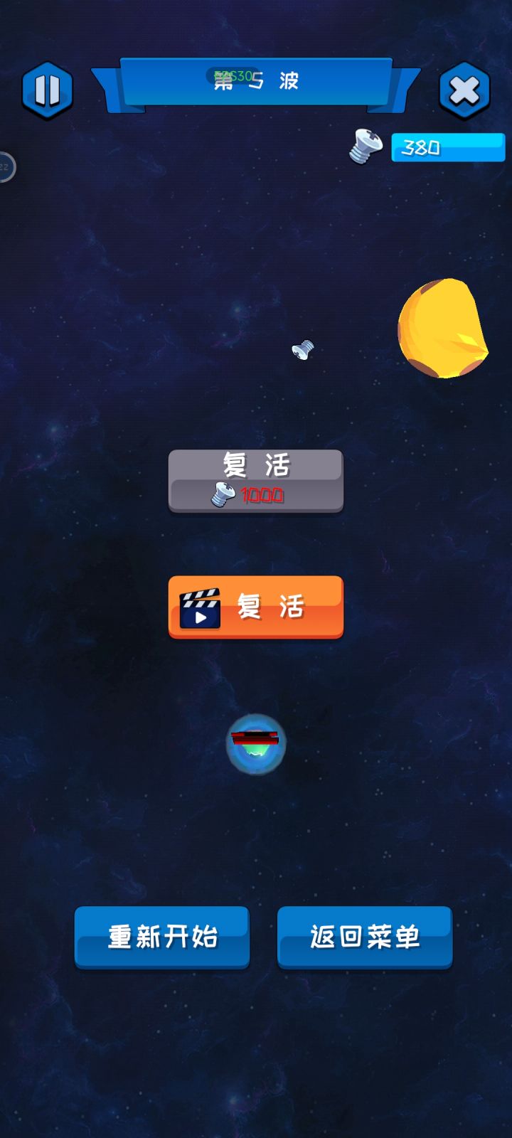 单机射击类游戏,融入了一些肉鸽元素,每过一关可以消耗螺丝钉来进行强化。关卡产出的螺丝钉数量有限,有资源统筹和选择策略性。敌人进入攻击范围后可以实现自动索敌和攻击,有手动走位的操作空间。偶尔还会掉落一些道具,比如导弹、僚机等,可以对攻击力进行补充。