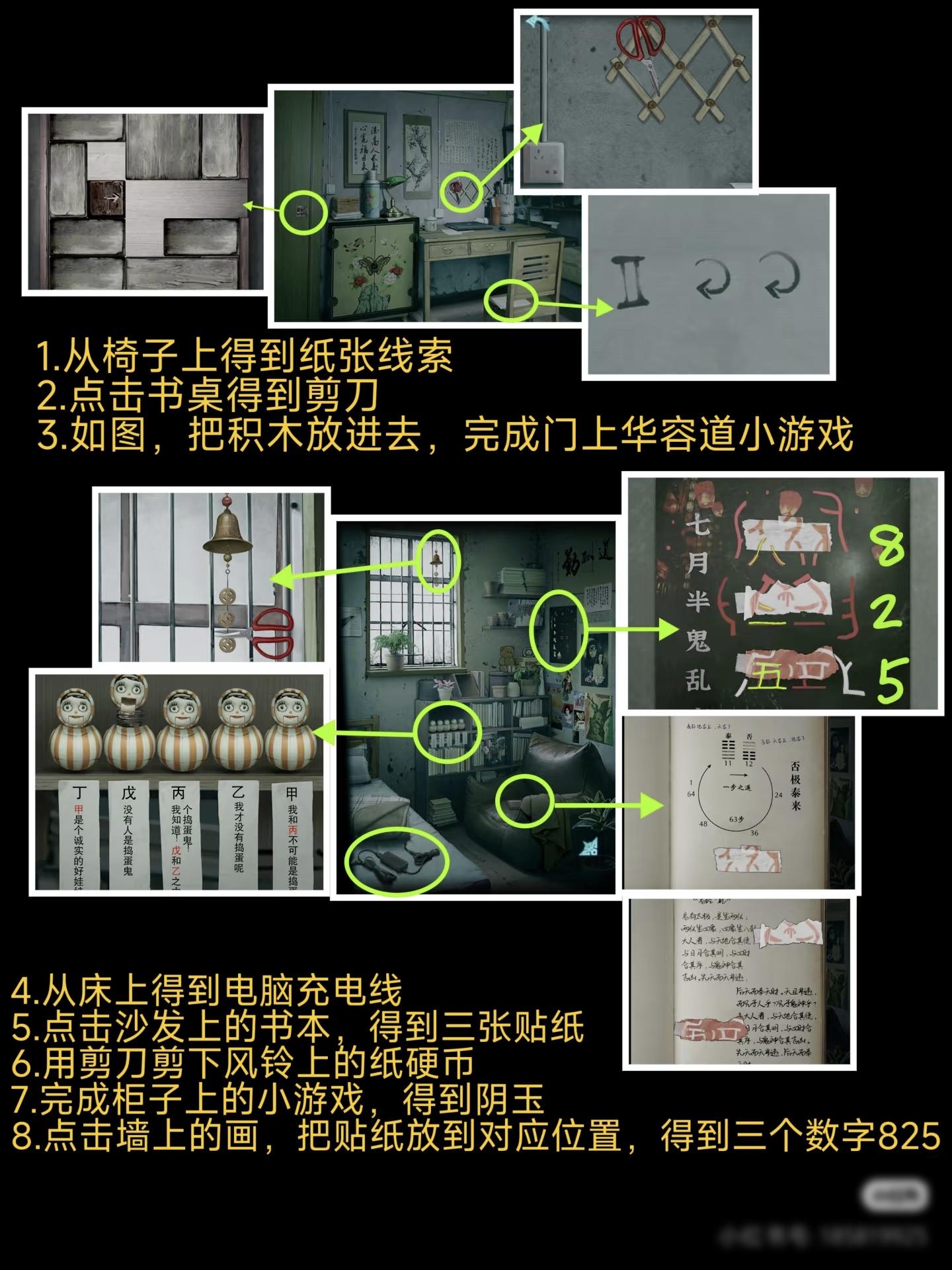 注意很多谜题是随机的,大家遇到的谜题可能会有所不同确认每个逻辑关系和方法最重要哈~~~~~~~~~~~~~~~~~~~~~~~~~~~~~~~~~~~~~~~~~~~~~~~~~~~~~~~~~~~~~~~~~~~~第一章查看门前的包,拾取【充电宝】,根据图案数量线索得到密码【3521】解锁手机用充电宝给手机充电,聊天记录的密码【086426】解锁门 拾取【小铲子】,【木棍】和【晾衣叉】