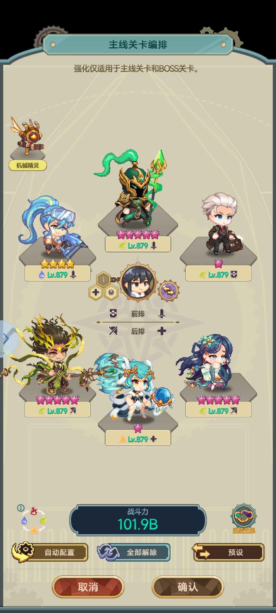 主线任务中是需要给主角升级的,经验一定要均衡升级,然后多给主角分一点,就比如主角80级但是其他角色50-60。可以卡在突破的等级就行收益最大。配队问题:t的话火队就选择阿尔比即可,火队主要以输出为主,游戏内容又是在限定时间内打败对面所以不能以坦度来推关了。辅助的话在火队是尤为重要的,增加暴击率和火属性伤害是非常离谱的,所以这就是为什么火队在前期是很强的存在了。辅助优先选法比安和格罗丽亚(没有的话可