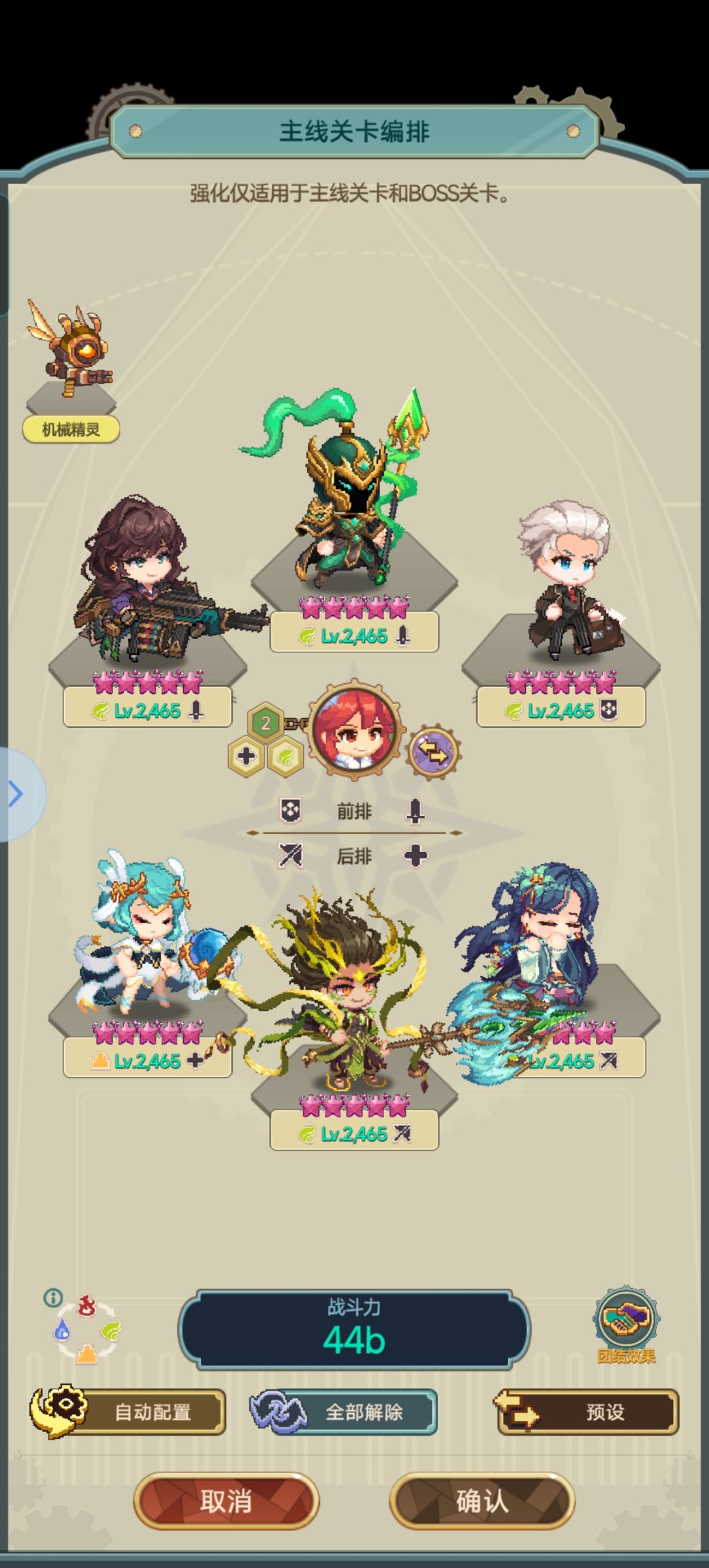 作为喜欢猎犬风格者,入坑便选了其为主c,目前玩了快一个月,攻略也看了不少,虽知目前以“伤痕”打法为主,但经过衡量,发现唯快不破打法也挺适合猎犬。附上阵容留恋,猎犬流亦可参考。 (队中所有英雄可看成满觉,后排赛琳可根据需要换成“黎露”或一直用“黎露”,如换黎露,前排亨利可换成洁斯) 注: 1. 机械精灵有石堂堂就用石堂堂(本人是因堂堂等级低才暂时不用); 2.猎犬装备炼化全攻击,炼化材料不足可留少量