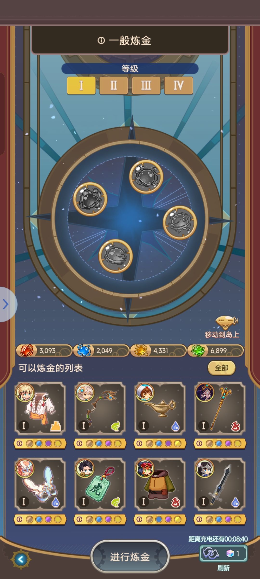 (各阶装备已全收集~) 全四阶武器打造的差不多后就懒得再专门去造武器了闲的没事干就想着可以把每阶装备全收集,于是就有了上图。一阶是最简单的,不过无所谓打着玩的 话说全打完后不是八个位置全空啊,剩七个角色装备没全时我还没注意到继续选全部打造,好在是一阶,花的元素不多#飞艇英雄