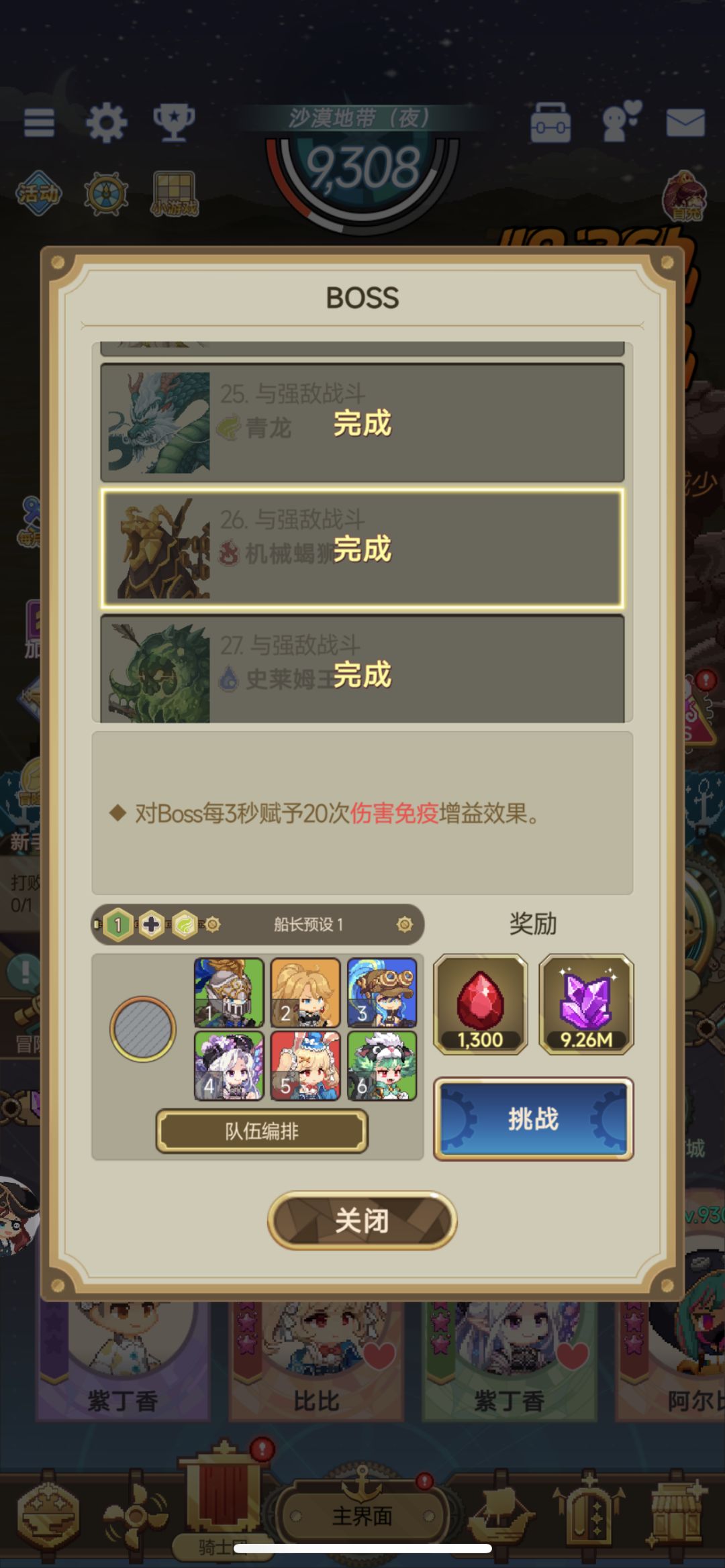 很多玩家被某些特定的boss卡的不能自已,这里做一个汇总盘点,提供思路供玩家参考.但是要过boss还是基础面板要达标,输出不够火力不足仍然需要发育到位才能与之一战. 首先新玩家入坑不多久就会卡在26机械蝎狮,该boss3秒20次伤害免疫,而前期主c大多数都是单段伤害,好不容易放个大招伤害被挡住了,哪怕面板达标连续被挡几次伤害必然也是打不过了.这里后排最好准备一只四星以上赛琳作为应对,可以快速消耗掉