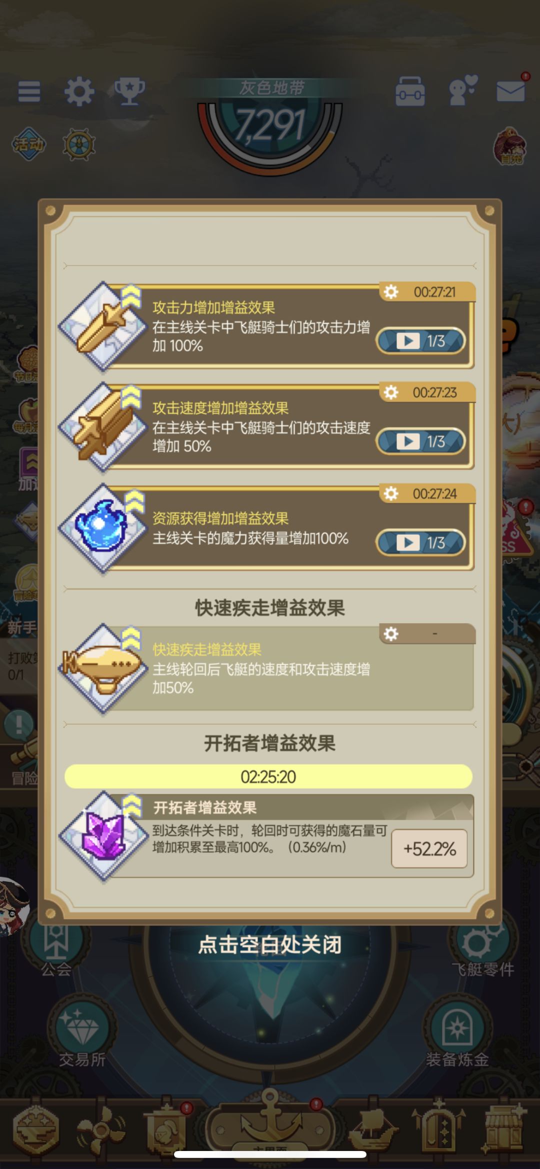 首先大家要知道,一天一共有四次加速,邮箱一个加速界面三个,一组全部点开算一次完整的加速,持续时间为一小时. 开加速收益最大有两个方向, 1:利用增伤推图推到更高层.层数越大轮回速度越快,经验也越多.比如极限最高层5000,和一个极限最高层5500,他们同面板离线后,极限最高层5500的会更快到达更高的关卡,经验累积速度更快. 2,轮回增伤配合视频加速打boss.注意广告加速和图中快速疾走效果是叠加