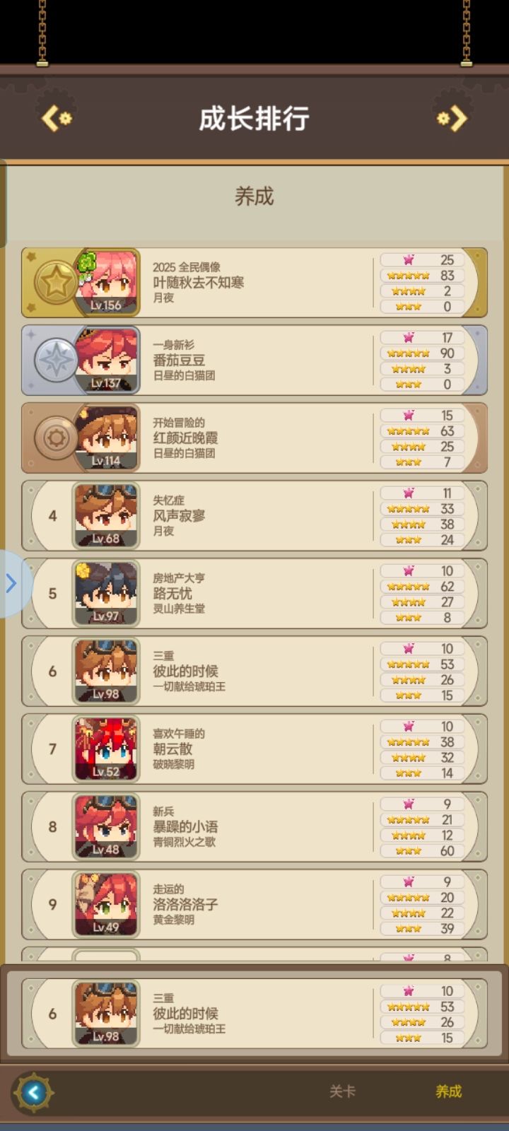 昨晚零氪57天1761级过97龙,今天用了两镐子升了6级到100了,图1-4是美杜莎、耶梦加得、玫瑰琳、火旗的过图数据(97的,后面通用加攻击属性就行)图5、6是过boos阵容和过图阵容,后面的是到97总共用的镐子和养成,养成方面一共21个攻击觉醒星、6个攻速星,主要点是保证玫瑰琳的技发在75左右后全拉攻速,400左右越高越好,可以用水限泰西斯换美杜莎,不过要拉攻击属性,同等级换水泰试过差3秒左右