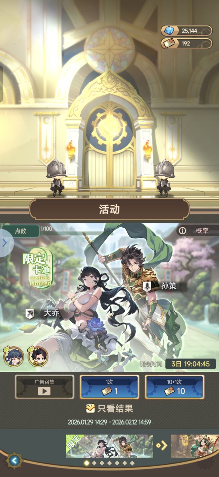 今天刚入坑,抽了个吕布貂蝉,手上还有3w钻和300多抽,是要等10号新限定还是继续抽