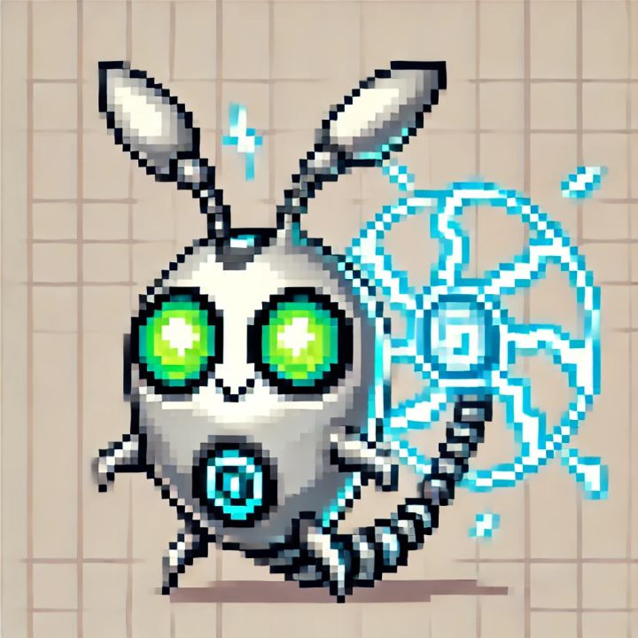 机械精灵名:闪螺灵感来源:精灵宝可梦 皮卡丘闪螺是一种拥有金属质感的椭圆形电力精灵,背部的双旋叶片和螺旋尾巴能在奔跑时产生电力。它的绿色电子眼能根据情绪变换图案,充满智能感。闪螺性格活泼好奇,常在屋内跑动储电,被部分家庭用作移动电源。它尾巴末端的涡轮装置可释放出高频电波进行攻击,也能在非战斗状态下为设备供电,深受喜爱。
