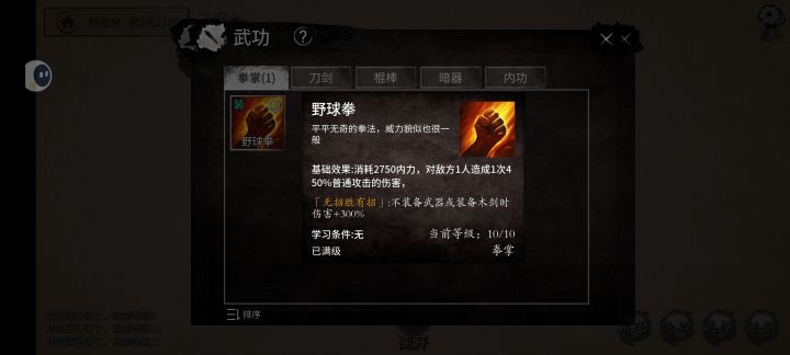作为资深金庸群侠传玩家,自然知道野球拳满级的彩蛋。冲进来就靠打野猪和挂木人刷野球拳,在第五天终于满级,果然有超强彩蛋!