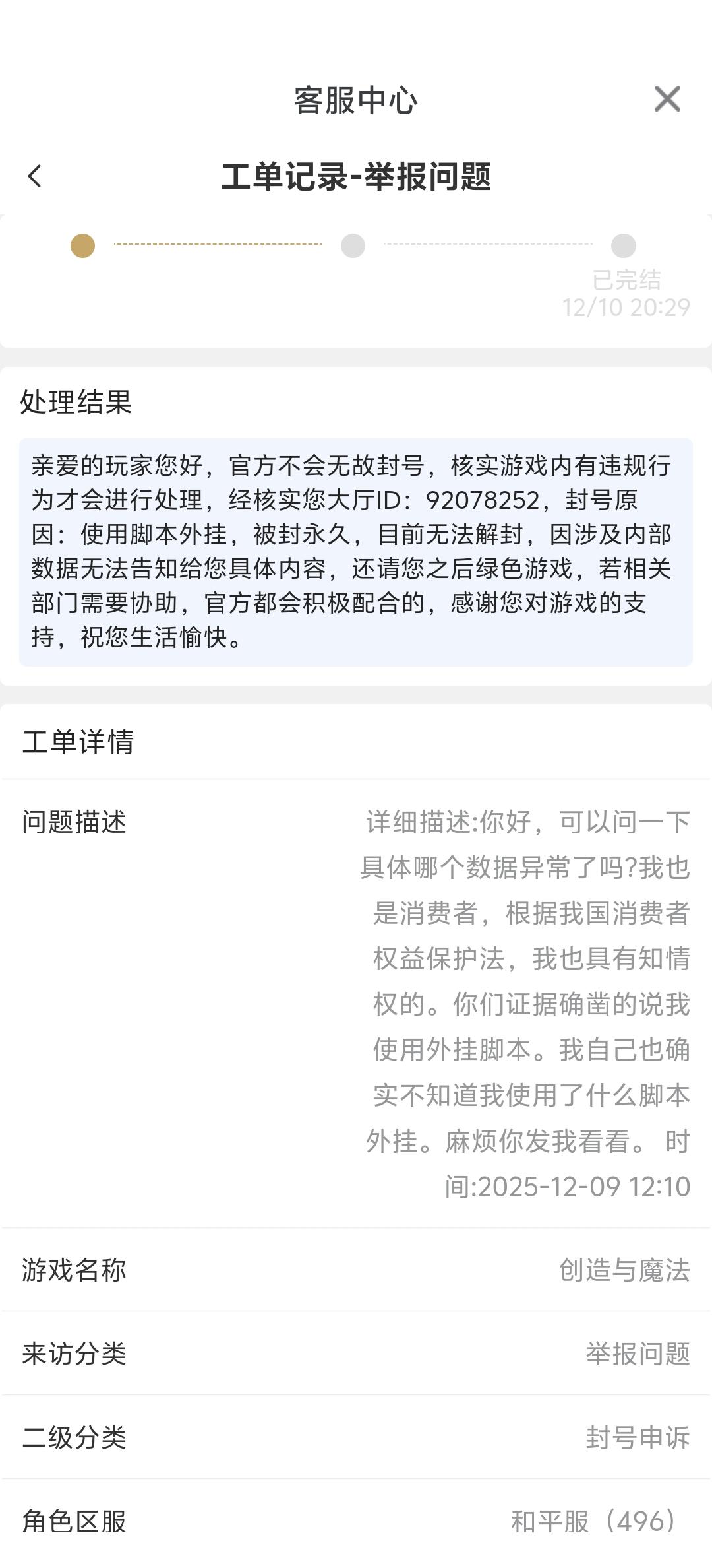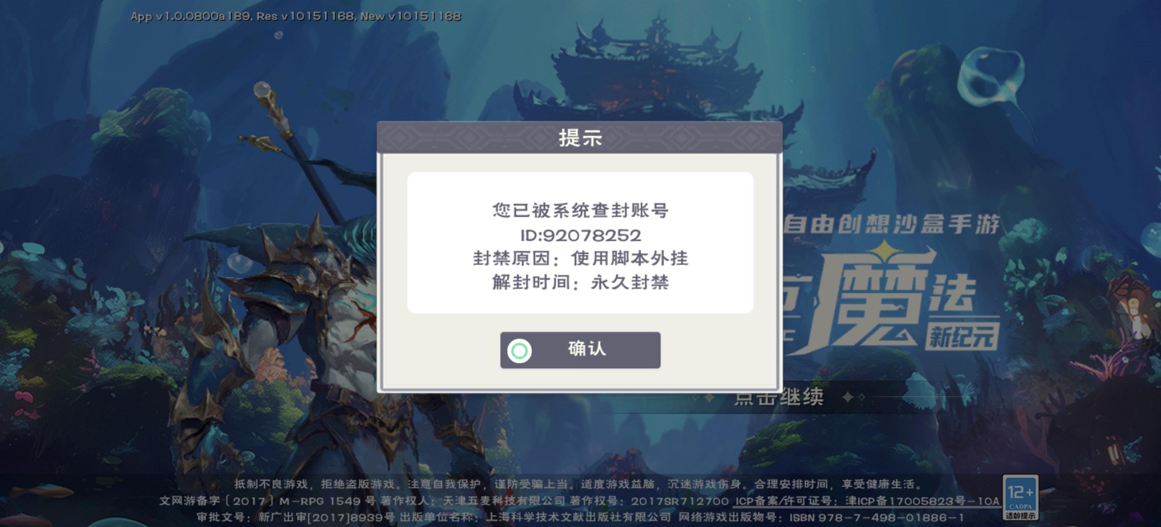 12月8号晚上九点在交易猫上面才购买了一个游戏账号,验号什么的都没问题就换绑了。把游戏下载下来了当天晚上也没有怎么玩,第二天12月9号8点左右就收到了封号斗罗通知,说我使用游戏脚本,沃克伐,这游戏也就那样了。能劝一个别玩就别玩吧。垃圾游戏一个。