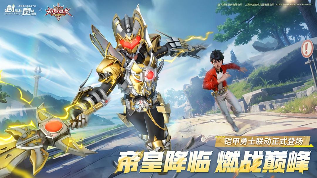 《创造与魔法》×《铠甲勇士》联动于12月26日正式上线! 超级英雄帝皇侠将降临贝雅大陆!本次联动探险家们将化身帝皇侠,作为正义的化身,抵御黑暗力量的入侵! 让我们在贝雅开启全新光影传说,用光的力量守护正义!