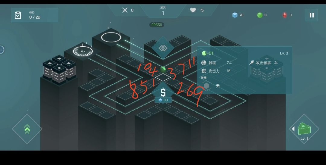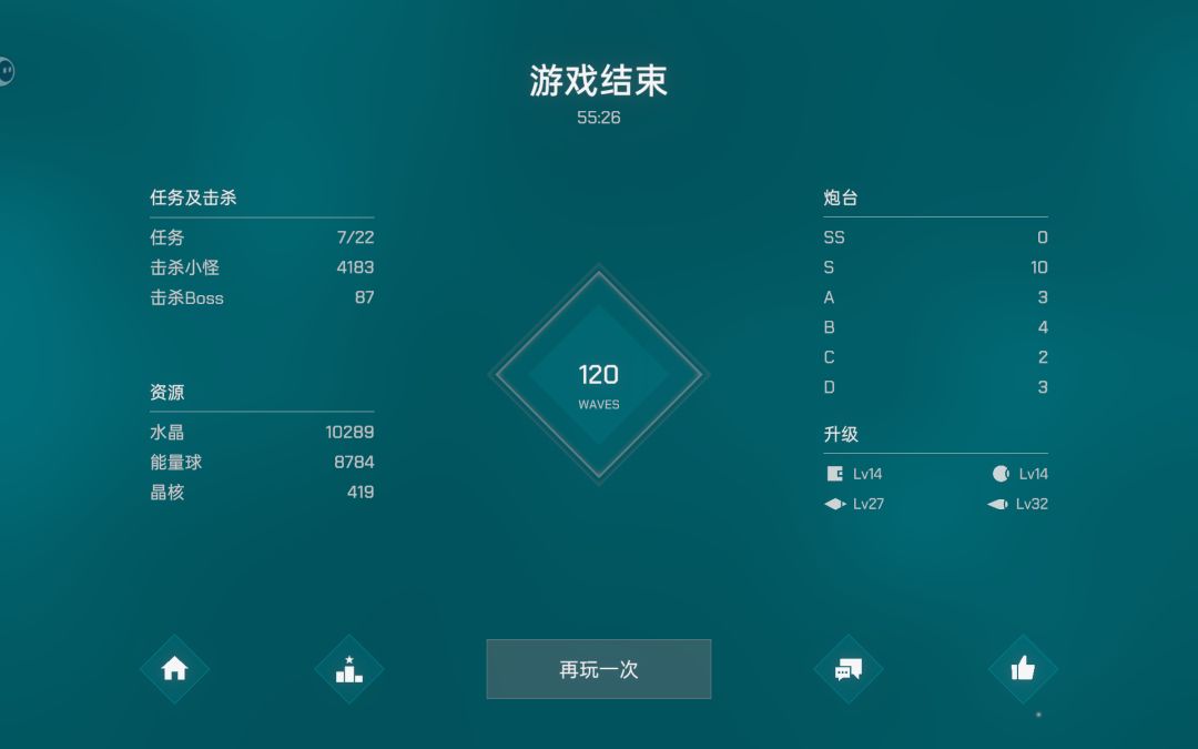 卖血流打法:开局直接不守,等开始掉血了再放塔,控制血量在1-3左右。 (多摸索几次就能控制好了。反正才开局,没控制好大不了重开。) 塔放在第一个弯附近的十字上,方便集火秒BOSS。 BOSS好了就打,由于血换了好多塔,可以更早打更高级的BOSS,获得更多奖励,滚雪球。 BOSS走不出第一个弯就换更高级的BOSS。小怪走不出第一个弯就升级能量塔。 第二天玩,还没解锁SS塔。尝试了两三次,打到了120