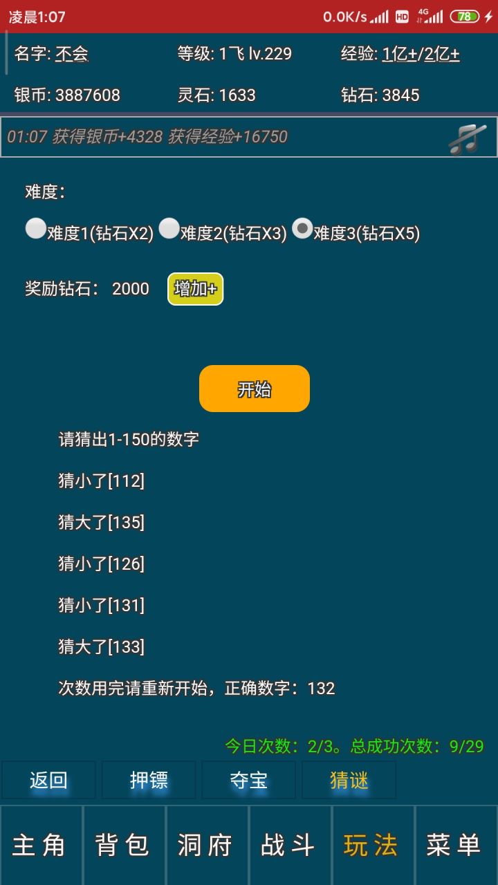 我修炼到了【炼气2层】。主角达到了17级。游戏名字【千古清风】