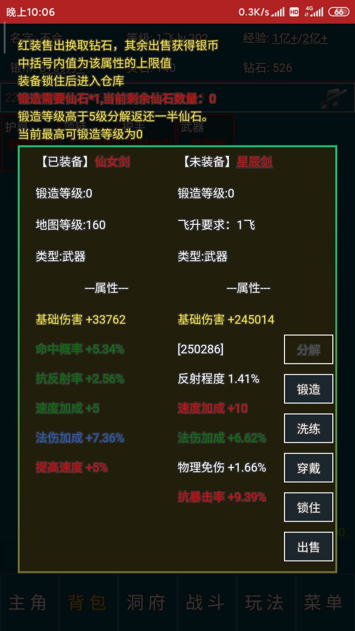 我修炼到了【洞虚8层】。主角达到了591级。游戏名字【天上仙】
