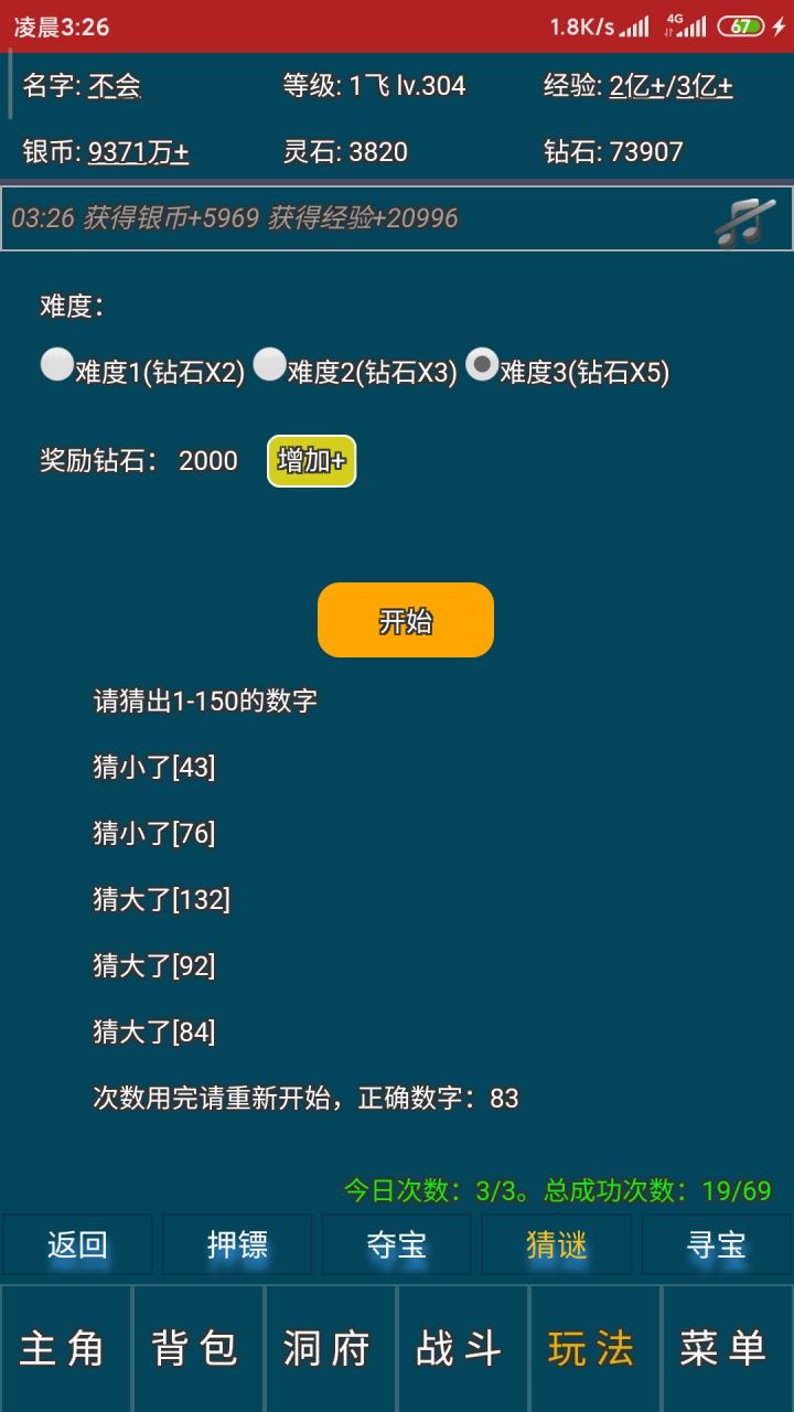 我修炼到了【洞虚8层】。主角达到了591级。游戏名字【天上仙】