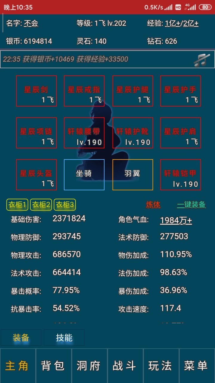 我修炼到了【洞虚8层】。主角达到了591级。游戏名字【天上仙】