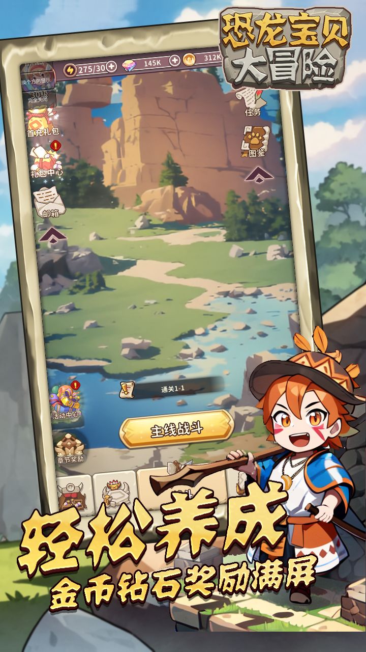 原始大陆恐龙宝贝大冒险,华丽肉鸽割草流畅操作体验。