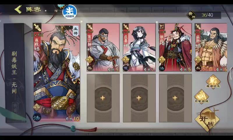 先说下大家最有争议的秦始皇,很多人不明白秦始皇怎么使用。 作为这个游戏最厉害的人物,秦始皇一定不会弱。 一技能独特的兵俑机制可以通过击杀出召唤物这个很容易理解。2技能君命的这个火附有个小技巧,可以通过毛遂或者归无期刷新技能,来保证每回合给物理c上火附,这样君命的死亡战国就永远变成下回合了。3技能1点法攻提供三格内兵俑4物理攻击,这游戏法师有个有点就是可以带画蛇添足直接面板提升巨大法攻,秦始皇后