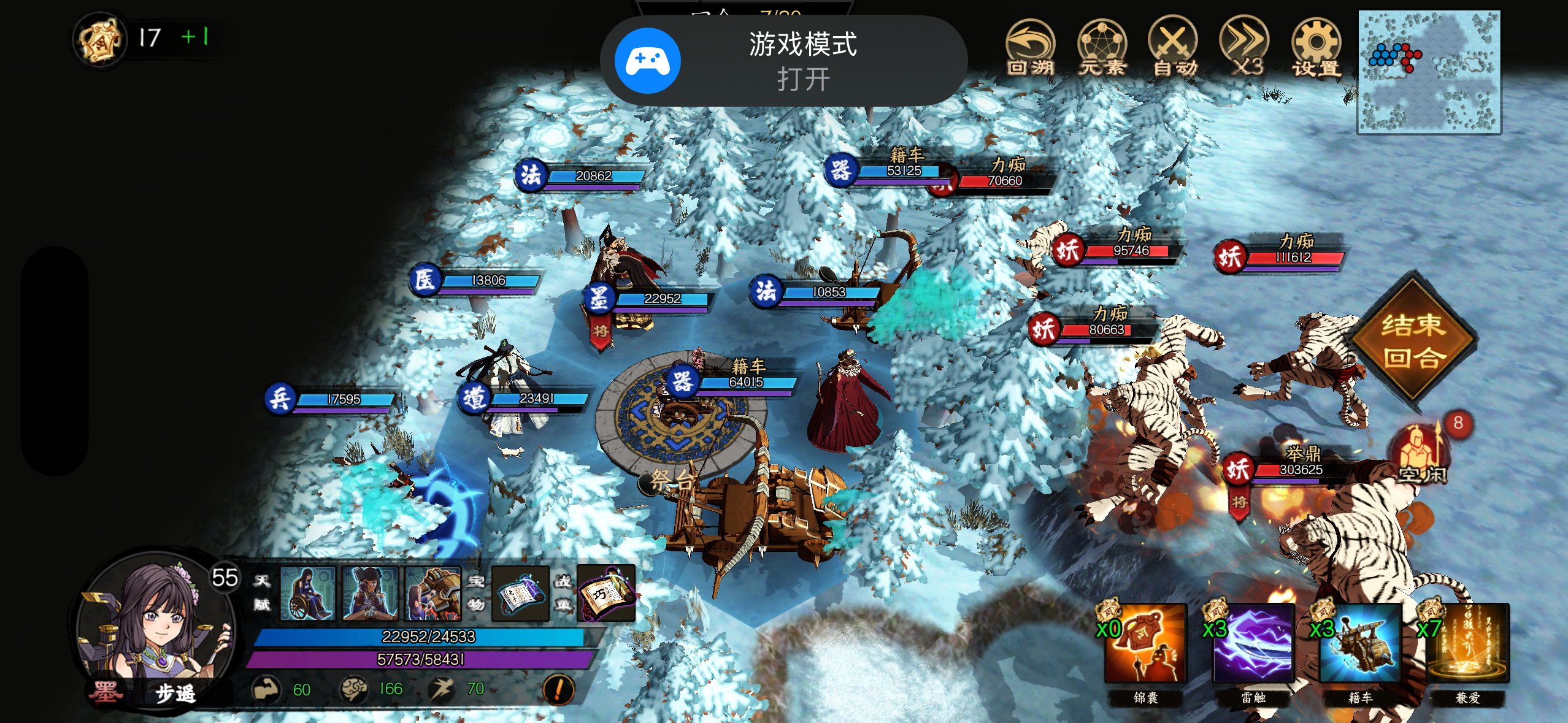 最难的心魔!无需君命吴起养!第二回合秒杀!其它聂政卧薪尝胆越王剑 毛遂(太阿)泰山弩车秒杀其它小怪不超过5回合清完, 最高85军团本!单杀!第一回合奔袭第二回合秒杀! 彻底变成了卖数值的游戏!严重偏离了战旗的本质 毫无乐趣可言!