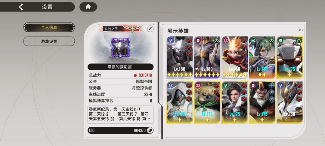 大家好,我是零氪小白,我喂零氪袋盐。 今天是神裔统领区第12天,主线推到20章了,突然想试试一直没过的刻托8层(我惦记着钻石啊) 那么…… 组装开始 首先确定阵容,经过我不断试错,最终确定阵容如下 这就是当时通关的总战力跟站位(答案抄起来) 接下来附上各个卡片的具体数值 家里条件有限,最好的家当都穿上去了,想必条件好的过的会更加轻松。 下面是关键点,尝试过刻托8层的玩家,都有这样一种体验,就去两秒