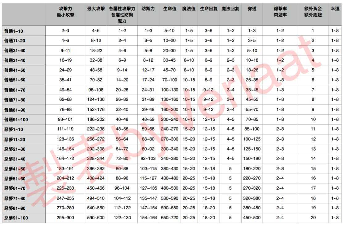 有没有大佬知道这个表的后续?地狱和炼狱的属性表有没有