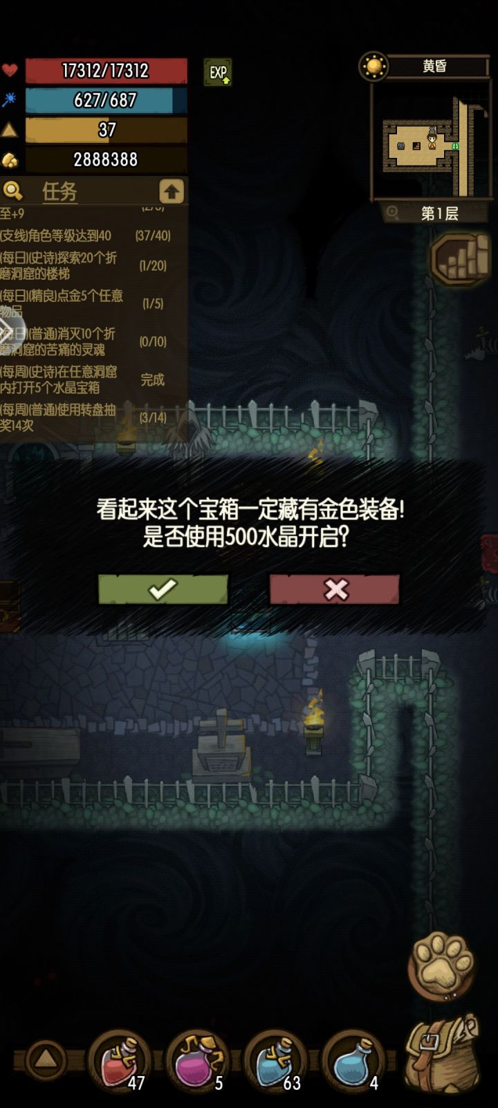 像那个史诗任务,打开任意5个水晶宝箱,其实并不用真的打开,只要触碰水晶宝箱之后点叉,点5次就能完成任务,白嫖2000钻