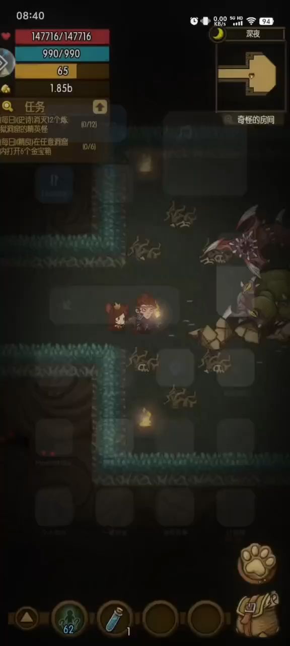 中间出了点小意外,数值太高自杀差点失败 . 原理: 离开洞窟,老头会刷新层数 只要不离开洞窟,有老头层数不变 自杀 = 不离开洞窟,重刷老头 . 卡精英: 和卡老头类似,刷了精英的层数,只要不离开洞窟,这一层就一直有精英(把上面的原理里的“老头”换成“精英”) 重刷的精英,会改变种类(例:普通一层的精英老鼠变成精英盗贼) . “离开洞窟”包括: 1. 点手机退出键“√” 或 背包“返回主界面” 2