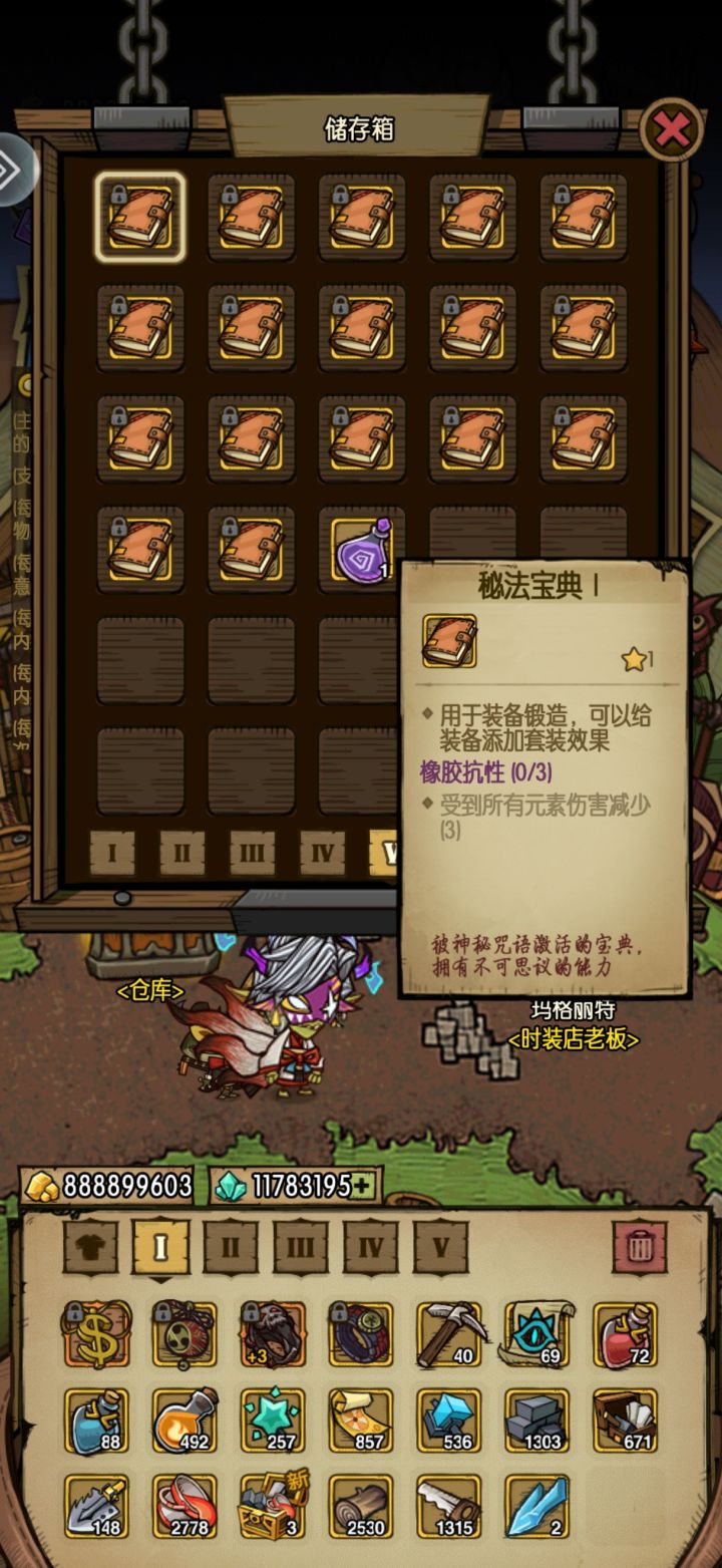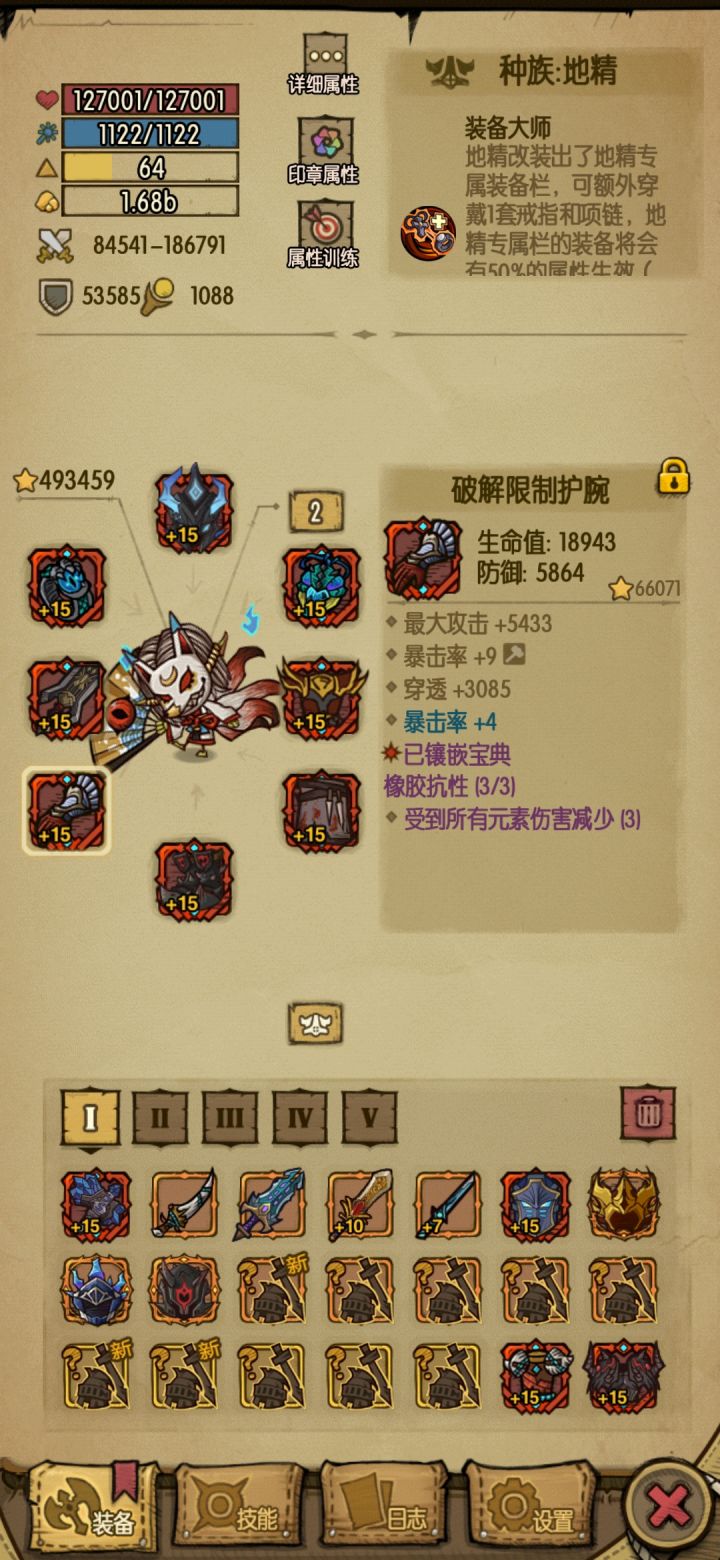 发现了这个游戏最硬霸也是最无聊的套装组合。魔龙之灾和橡胶抗性六件套(宝典附魔),这个组合可以让你免疫100%的元素伤害。经过我闲得无聊的测试,矿道大虫的毒,灵魂岛守底BOSS的法球,雷神的电光一闪都算是元素伤害。完全魔免就意味着BOSS那些纯法伤的技能,就是站着给你打。还剩下两个装备格子,喜欢带啥就带啥,我带的鸭头技能还有掉血增伤。卡牌再搭配个暴吸,每层流血提升5%伤害,我地精还有切割层数加三,舍
