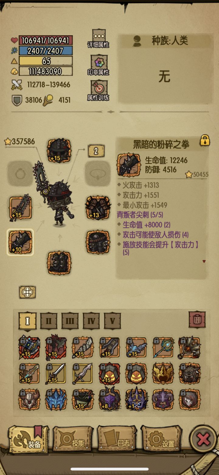 发现了这个游戏最硬霸也是最无聊的套装组合。魔龙之灾和橡胶抗性六件套(宝典附魔),这个组合可以让你免疫100%的元素伤害。经过我闲得无聊的测试,矿道大虫的毒,灵魂岛守底BOSS的法球,雷神的电光一闪都算是元素伤害。完全魔免就意味着BOSS那些纯法伤的技能,就是站着给你打。还剩下两个装备格子,喜欢带啥就带啥,我带的鸭头技能还有掉血增伤。卡牌再搭配个暴吸,每层流血提升5%伤害,我地精还有切割层数加三,舍