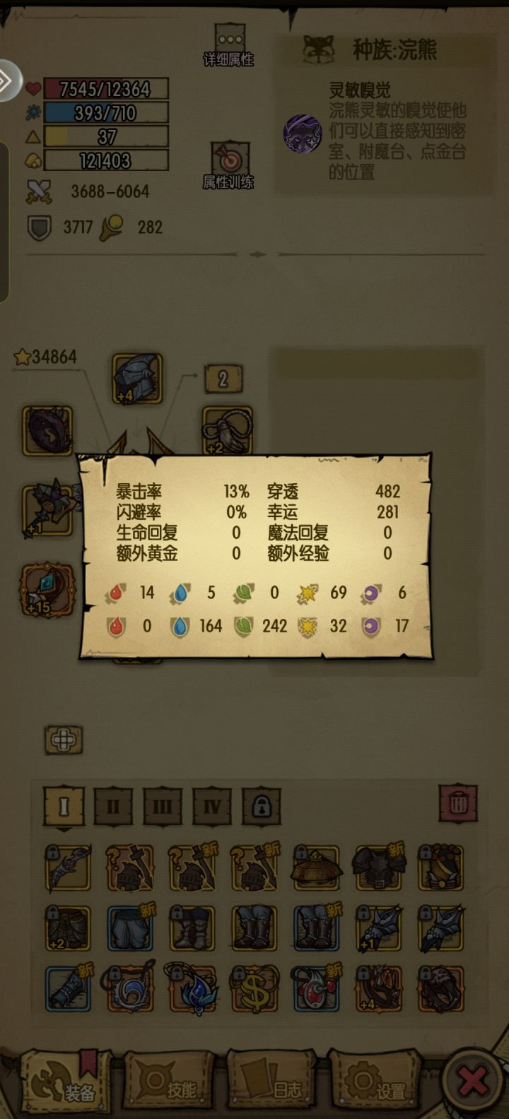 发现了这个游戏最硬霸也是最无聊的套装组合。魔龙之灾和橡胶抗性六件套(宝典附魔),这个组合可以让你免疫100%的元素伤害。经过我闲得无聊的测试,矿道大虫的毒,灵魂岛守底BOSS的法球,雷神的电光一闪都算是元素伤害。完全魔免就意味着BOSS那些纯法伤的技能,就是站着给你打。还剩下两个装备格子,喜欢带啥就带啥,我带的鸭头技能还有掉血增伤。卡牌再搭配个暴吸,每层流血提升5%伤害,我地精还有切割层数加三,舍
