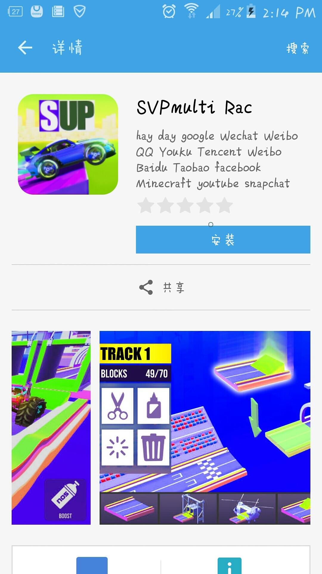 说到赛车竞速游戏大家第一反应应该就是移动平台极具人气的经典传统赛车作品《狂野飙车》和《极品飞车》了,这类游戏通过逼真的场景和精细的操作给玩家带来惊险刺激的感受。但是近年来,玩家也越来越多元化,很多赛车游戏也开始走一些操作简单、交互性强的游戏风格,而这类游戏因为操作简单,所以也更像是休闲游戏。今天给大家带来的《SUP 多人赛车》是由Oh BiBi工作室制作推出的一款多人在线、实时竞技的休闲赛车游戏