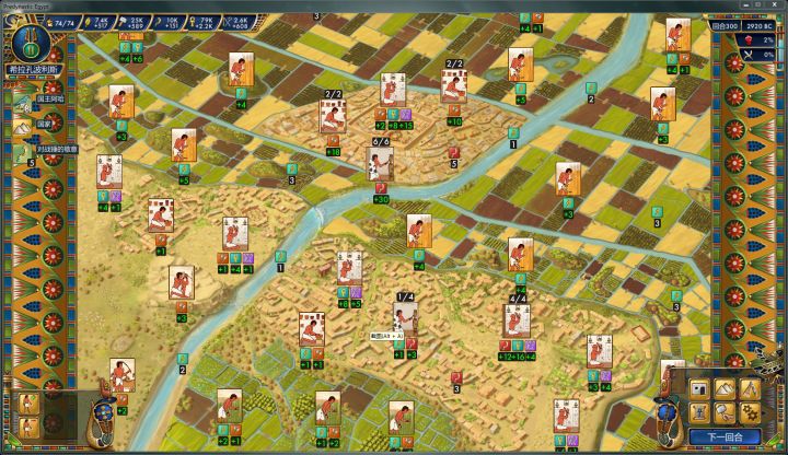 6.通关线路:如5.中提到的 本人走贸易流,主要依靠大地图开完之后和各个贸易价值高的部落多线交易来爆足8K锤子,但注意这种打法粮食比较吃紧,经常出现一回合只加个位数粮食的情况(自己看情况决定留不留卖谷物一类的部落)。虽然是贸易线,但探索不能停,开出全图之后只要两个人沿河探索即可,下面的到底之后上面应该走到西奈半岛了,把他丢去开半岛就行。PS:敌对部落除非是知识的两个或者你缺粮食,敌对的就搁着不管,要统一了就一波洗掉完事。
