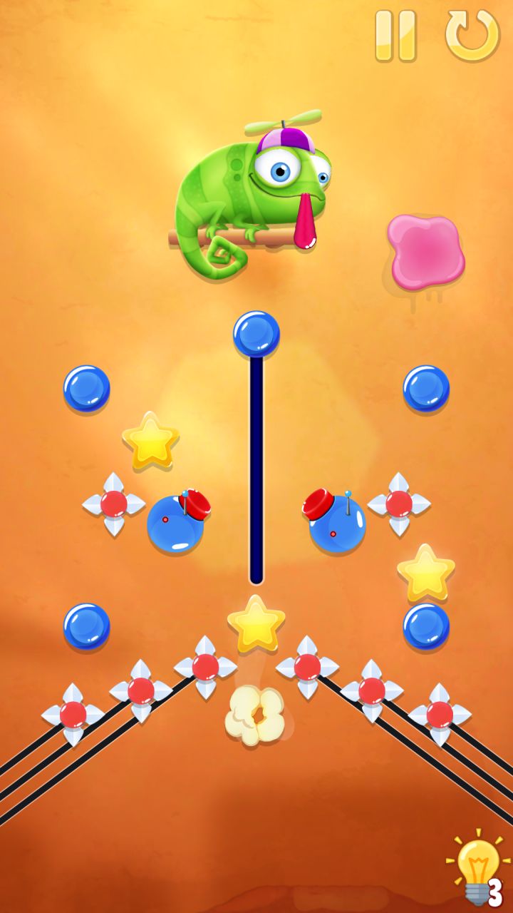 《Pull My Tongue》是一款画风可爱的休闲小游戏,游戏的主角是一只爱吃爆米花的变色龙,不过爆米花的位置大多数情况下都很远,我们则需要帮助它深长舌头,躲过重重障碍吃到好吃的爆米花,游戏上手很容易,可是要获得三星的评价还是需要动点脑子的哦!益智玩法易上手难精通我们的主角变色龙作为宠物生活在瓶子里,当某一天看到主人手里的爆米花后,它就再也按耐不住那颗吃货的心了,众所周知变色龙有着很长的舌头