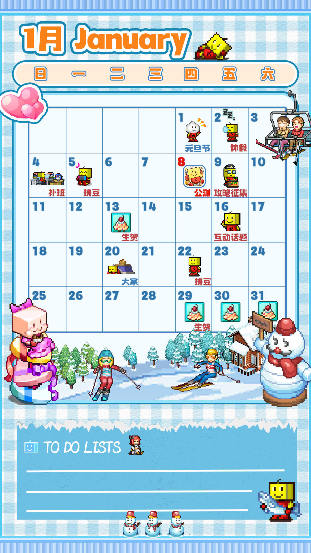 💐元旦快乐!新的一年来啦!📅你今年有什么想做的事呢?小队双手呈上1月月历模板~📊小伙伴们可以长按图片保存,制定你的1月计划,期待你的返图哦!🎇小队先来,依然是忙忙碌碌的一个月呢,好紧张...《开罗游戏世界》即将公测了,记得预约哦~感恩抱拳!#发现好游戏 #开罗游戏 #模拟经营 #游戏日常 #今天游戏圈发生了啥 #开罗君 #开罗游戏世界 #模拟经营游戏 #游戏安利 #新年新安利
