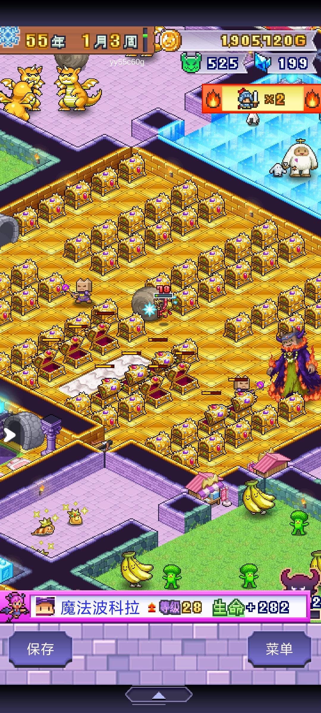 只讲第一档怎么过,通关一次后有继承会容易很多。1,房间人口和最小格子数:7格3人,11格4人,17格5人,25格6人,35格7人。三个一样的怪物在同一个房间涨全属性10%,房间超员扣全属性50%。2,怪物房间可以不通道路,方便冒对话框讨要礼物。经常送礼能提高勤奋度,勤奋度1:1加成魔力,是主要魔力来源,也是16年结算参考值之一。3,更新后,其他房间的宝箱会被打开,魔王房间的宝箱在魔王嗝屁前都